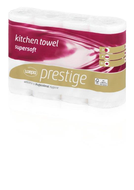Wepa Prestige kamilla illatú, 3 rtg. fehér 9,5x12cm 150lap/tek, 8 tek/csom, 8 csom/zsák