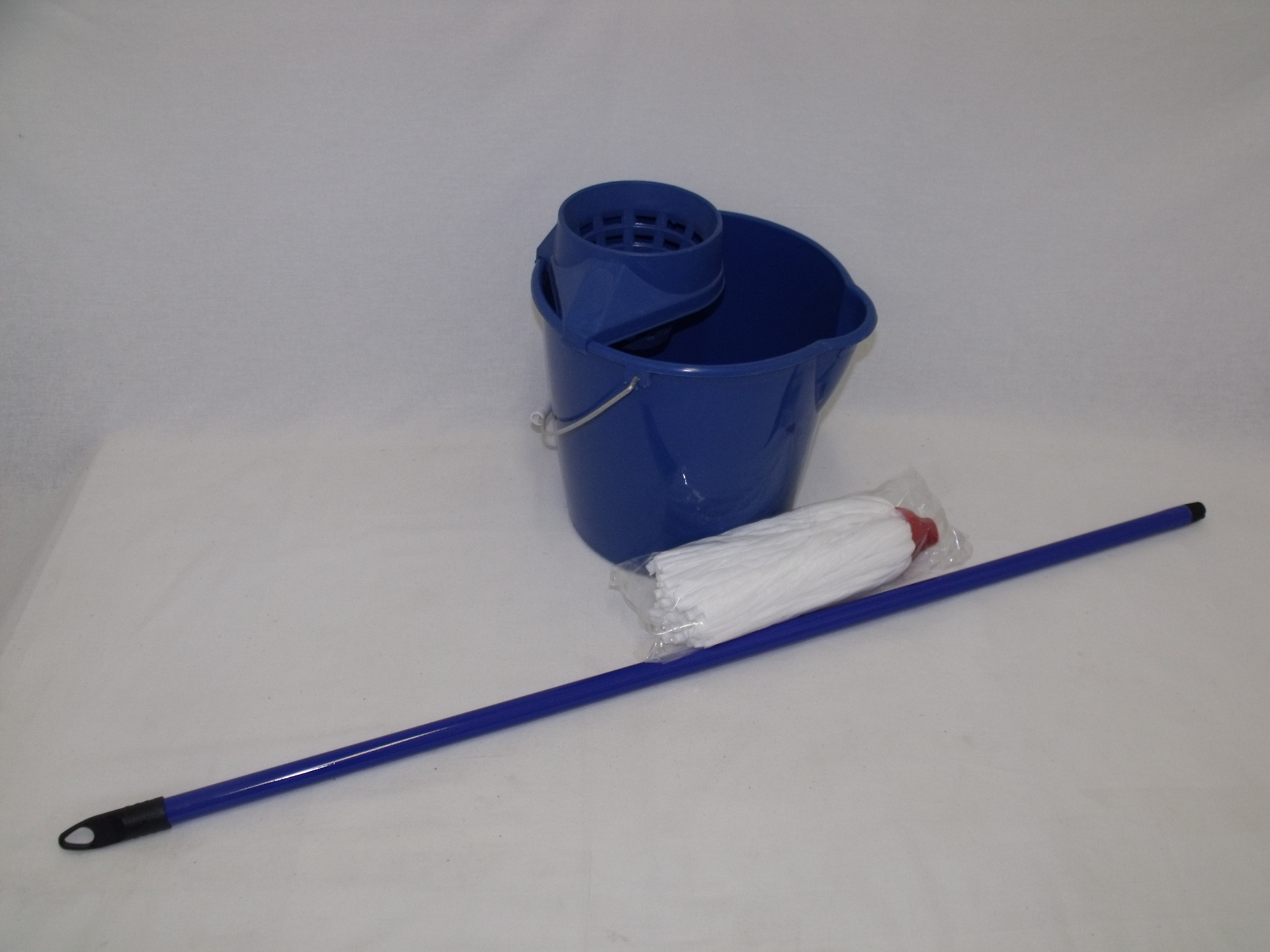 12 literes vödör csavarókosárral, műanyag 120cm nyél, 160gr-os viszkóz mop